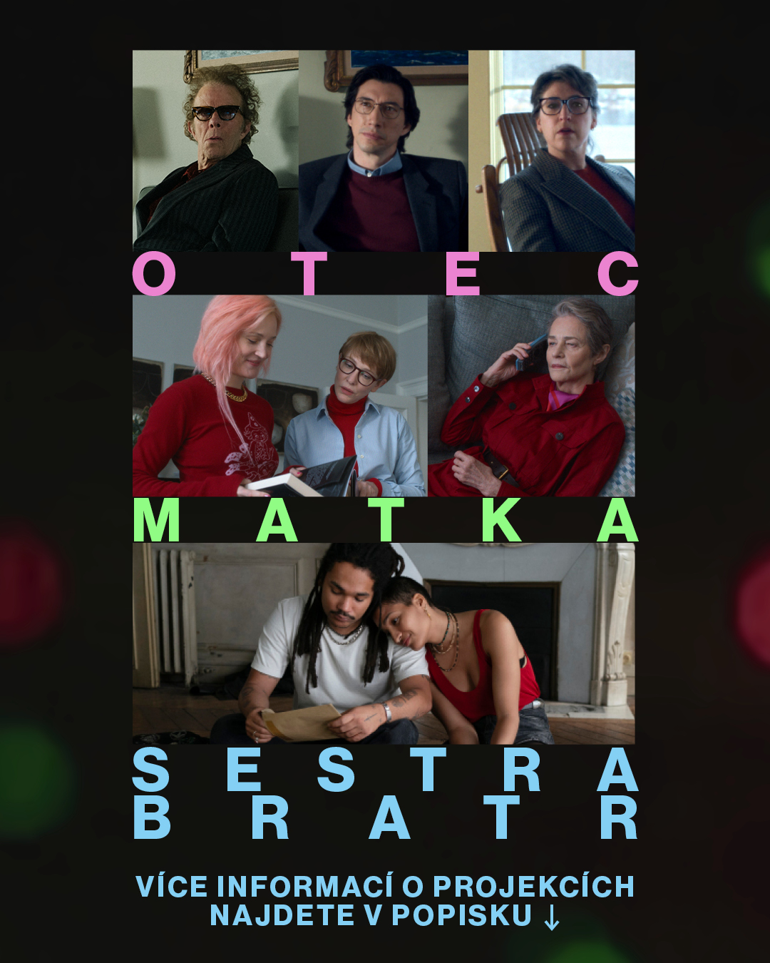 Poslední dva únorové večery si můžete zpestřit v kině, které pořádáme v suterénních prostorách Kotelny v Areálu šroubáren čp. 859. V pátek 27. 2. od šesti večer uvedeme novou českou pohádku Princezna stokrát jinak. Chudák princezna Stella! Každý den se budí v jiné podobě a hrozí jí, že jí to zůstane navždy. Ze stejné nemoci se dokázal vyléčit jen strašlivý rytíř Ukrut. Dokáže Stella za pomoci sympaťáka Johana zjistit Ukrutovo tajemství? Od 20:00 navážeme nenovějším filmem klasika americké nezávislé kinematografie. Ano, Jim Jarmusch natočil další film, tentokrát v povídkovém formátu, který sám kdysi rád využíval. Jmenuje se Otec Matka Sestra Bratr a měl by to být návrat ve velkém stylu. Barvy času, které uvádíme v sobotu 28. 2. od osmi, je francouzská komedie o tom, jak životy a činy našich předků ovlivňují budoucnost, tedy životy naše. Vizuálně kouzelný, vtipný i dojemný film se odehrává na konci 19. století i v současnosti.